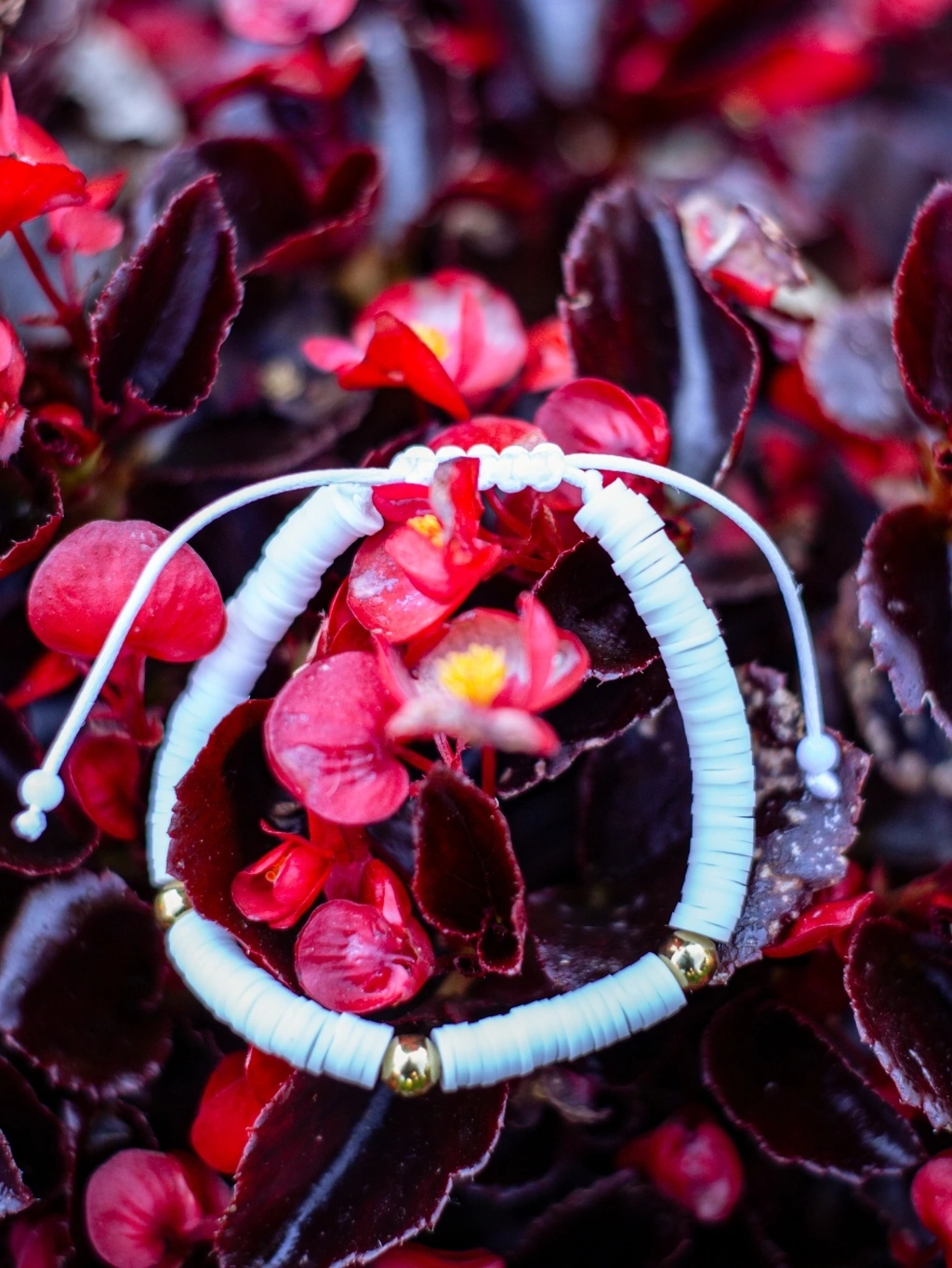 Pulseira “Areia branco” – Contas planas e detalhes douradosPulseira “Areia branco” – Contas planas e detalhes dourados