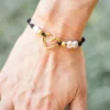 & Custos de entregaPoder e elegância unem-se nesta pulseira Guardian Tiger. Feita com missangas de argila, fio de seda resistente, espaçadores prateados, contas em aço inoxidável e a majestosa pedra natural olho-de-tigre, símbolo de força e proteção.